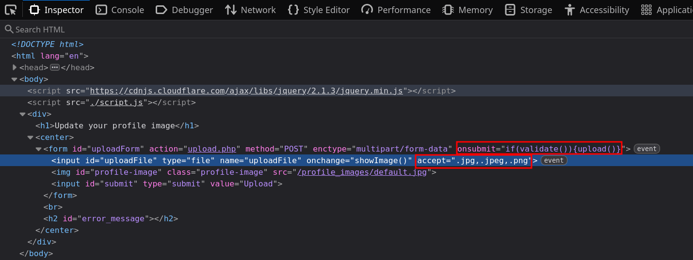 Get into the interesting part. Client-side is easily bypassed. From now on we’ll look at the server-side protections.