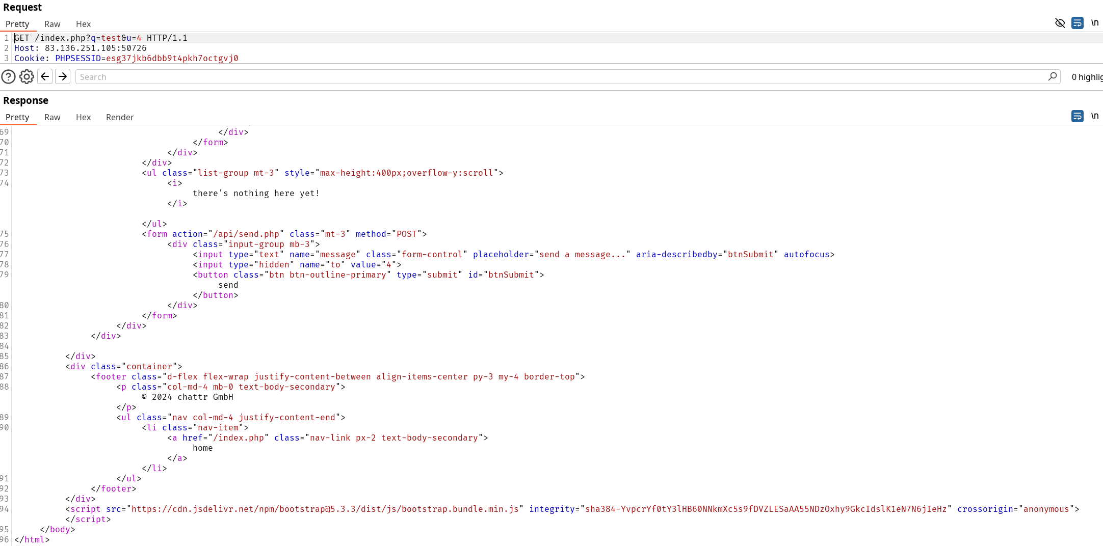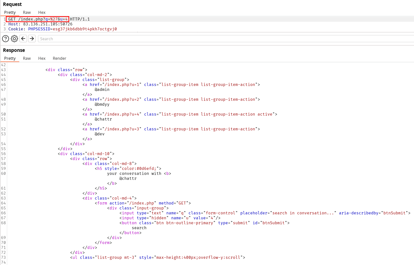 To this we can add the fact that the tchats can easily be targeted since the ID are incremental and admin tchat path is fixated as https://83.136.251.105:42326/index.php?u=1. All of these are not the focus of the lab but should be mentioned anyway. Let’s focus back on SQLi and see how we might be able to find some more injections on the broadened scope since we’re logged in.