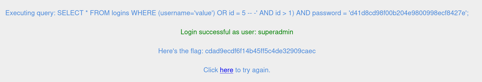 Even though we have compromised the database content and we obtained the hash, they are using Argon2 which is intended to protect against hash cracking. Note in this Write-Up we haven’t tried obvious credentials yet since the focus was SQL injections though we should have done that by now.