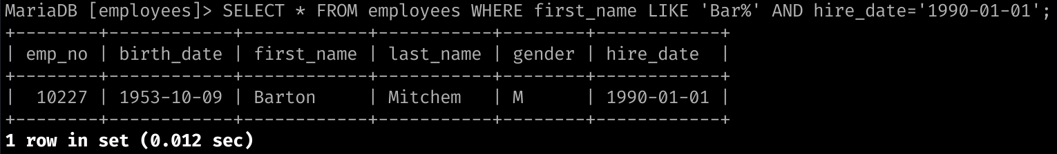 Was hired on 1990-01-01 → WHERE hide_date=‘1990-01-01’