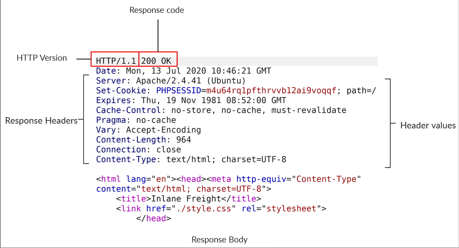 Set-Cookie | Set-Cookie: PHPSESSID=b4e4fbd93540 | Contains the cookies needed for client identification. Browsers parse the cookies and store them for future requests. it follows the same format as the Cookie request header. |