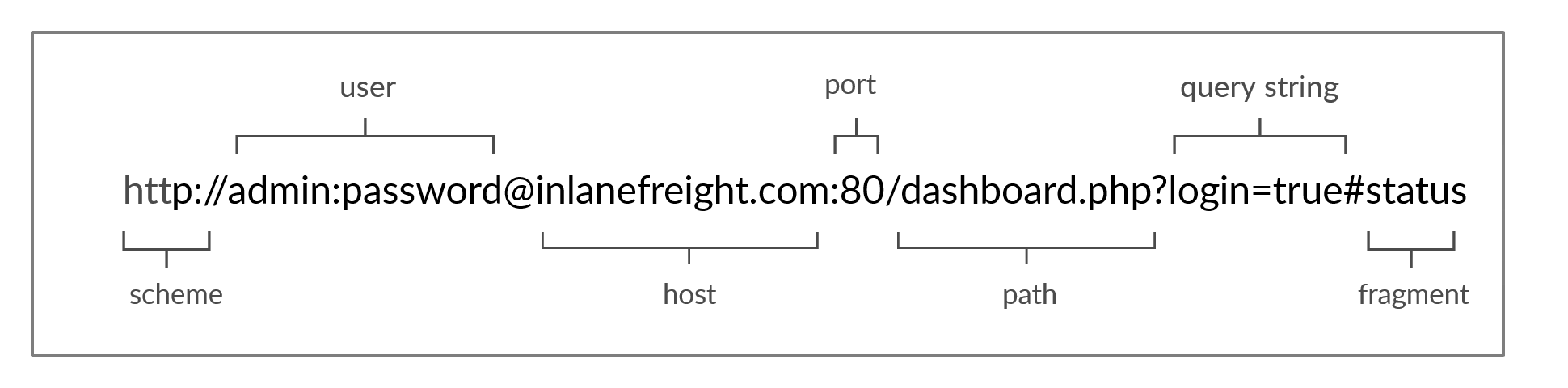 Host | inlanefreight.com | Host signifies the resource location. Can be a hostname or an IP address |
