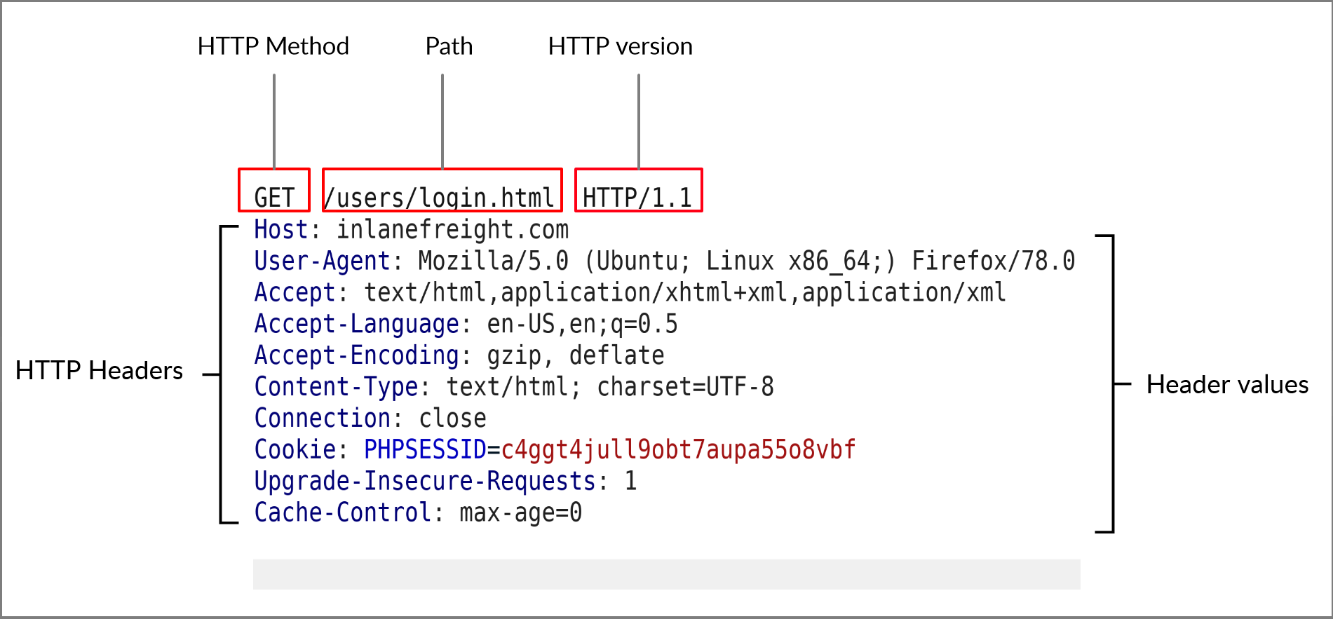 Referer | Referer: http://www.inlanefreight.com/ | where the current request is coming from. accessing this website from Google and I’d log https://google.com as the referer . can be manipulated and shouldn’t be considered for logic implementation. |