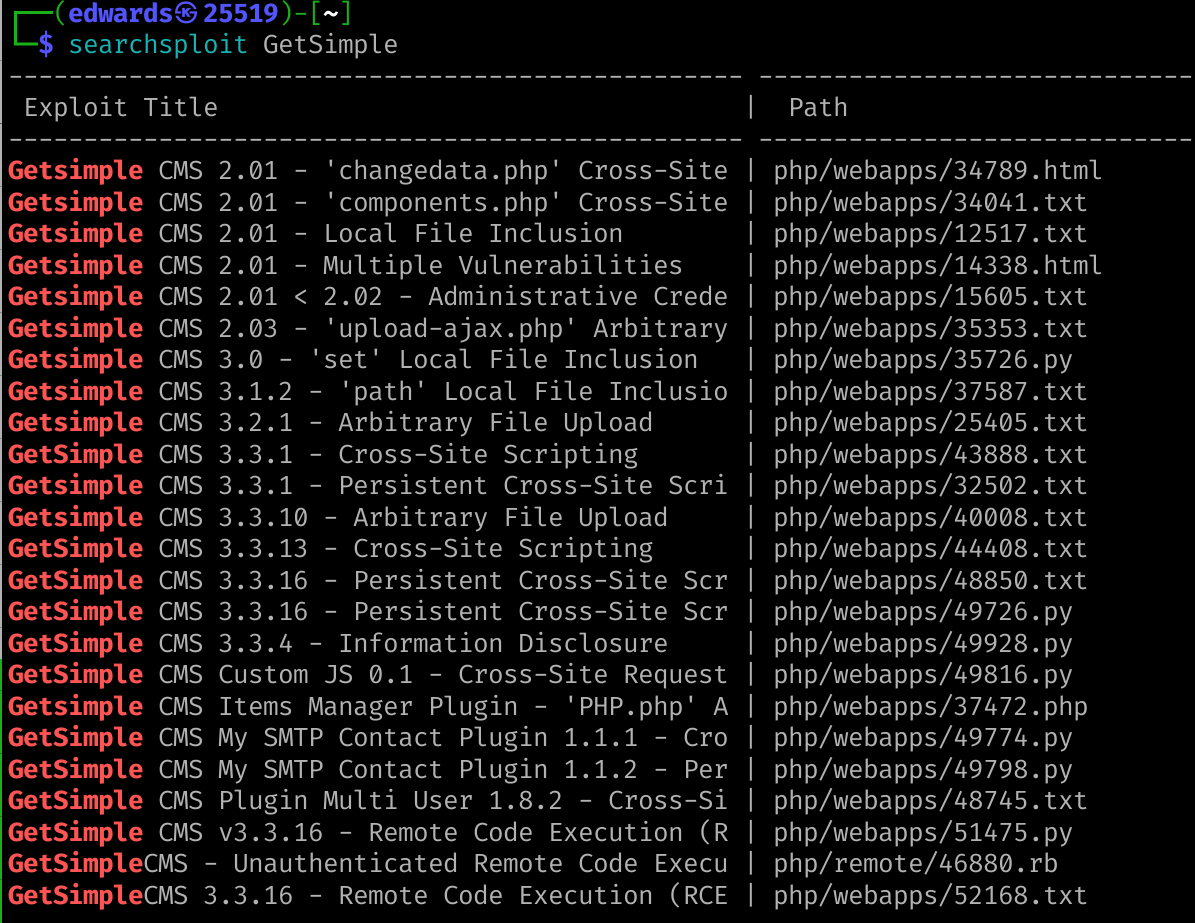 Service Info: OS: Linux; CPE: cpe:/o:linux:linux_kernelWe’re working on a GetSimple CMS Framework, and online research shows it is vulnerable to Remote Code Execution, though the latest version requires authentication first.