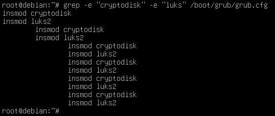 Task 4 : Verify that the necessary modules to detect encrypted disks are active in the grub boot configuration file (/boot/grub/grub.cfg).