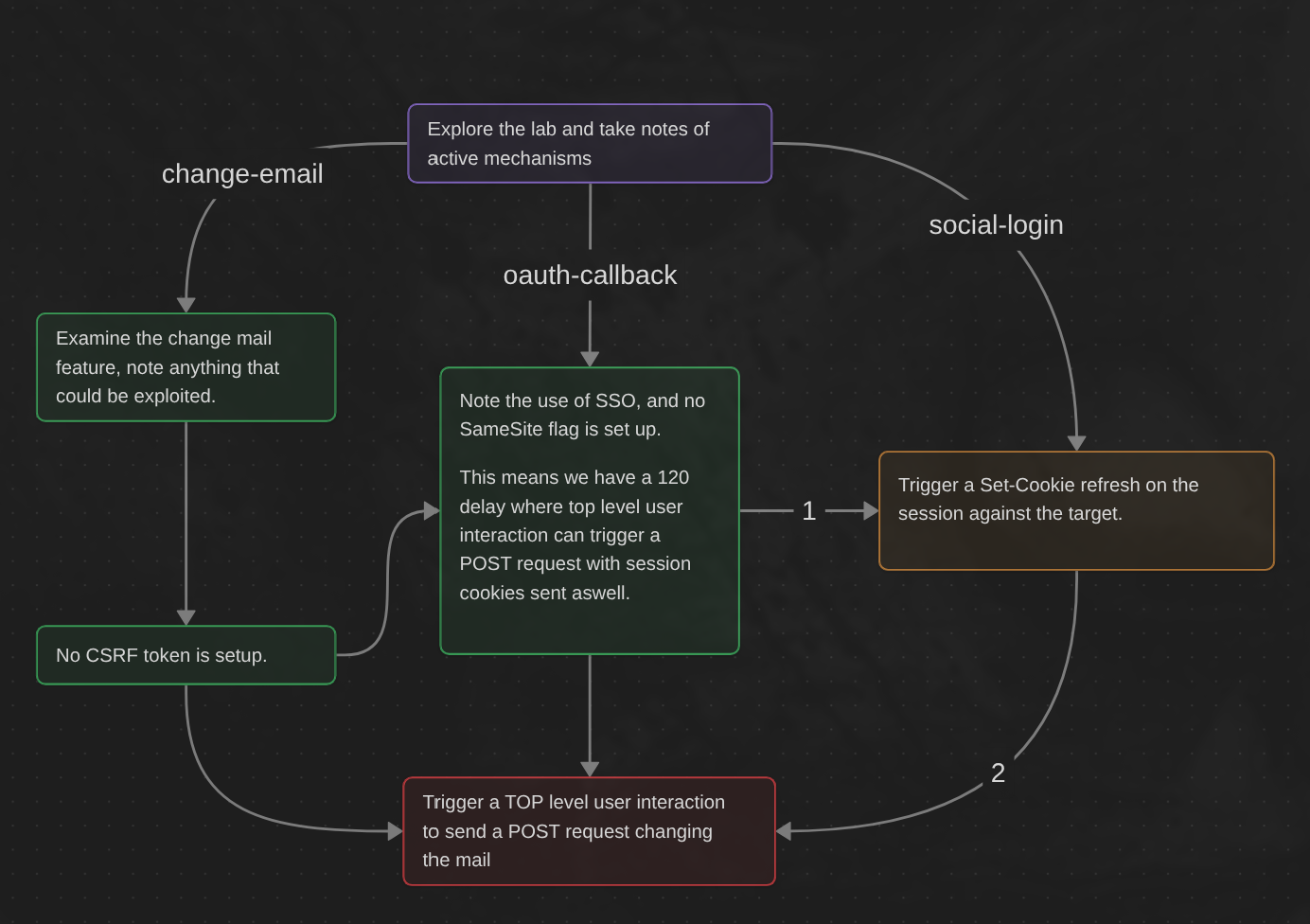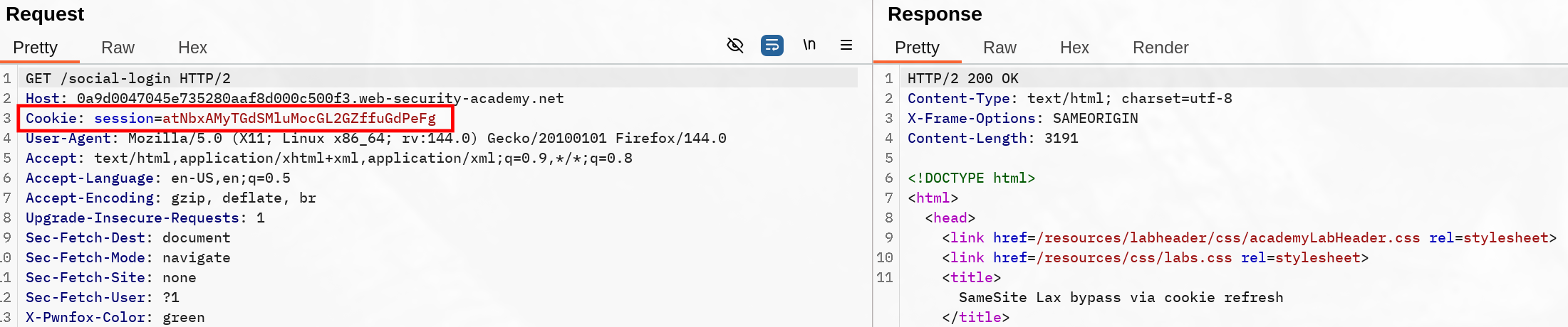 Maybe this lab workflow is hinting at it hard, but the social-login initiate the whole oauth all over again. To find out how it all happened, I tried replaying most request and watch if my cookie session would get refreshed. I noticed the social-login was initiating the whole Oauth process, and my session was set again during the callback :