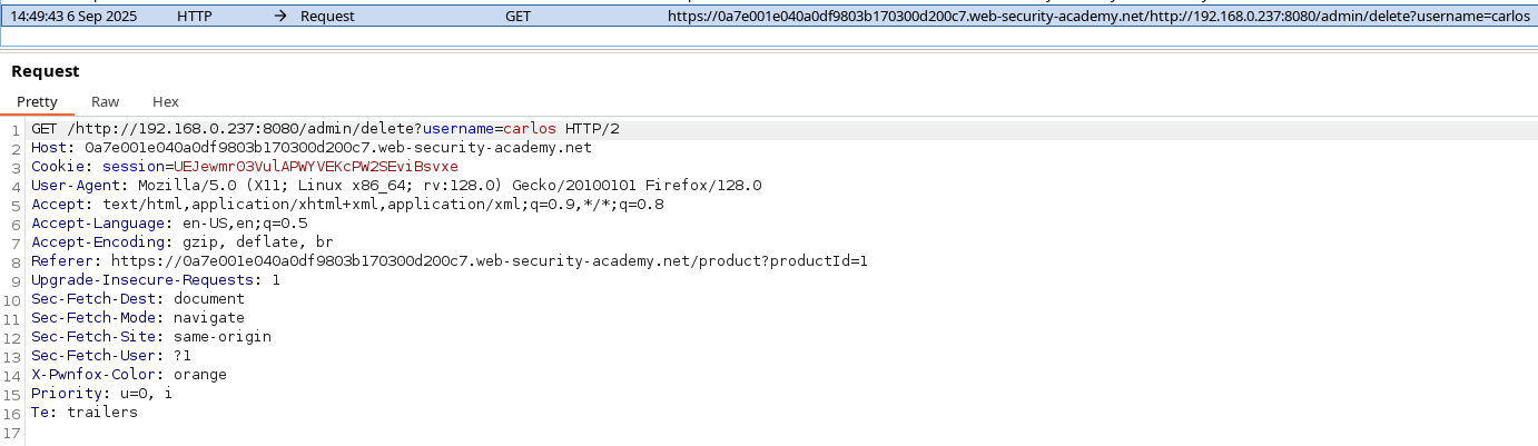 Since we found the Admin IP address access, we can repeat the process after founding the unauthorized Carlos deletion action :