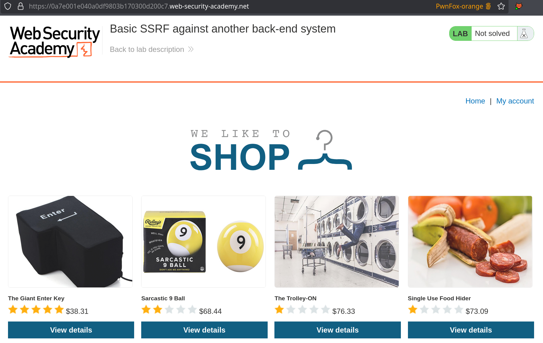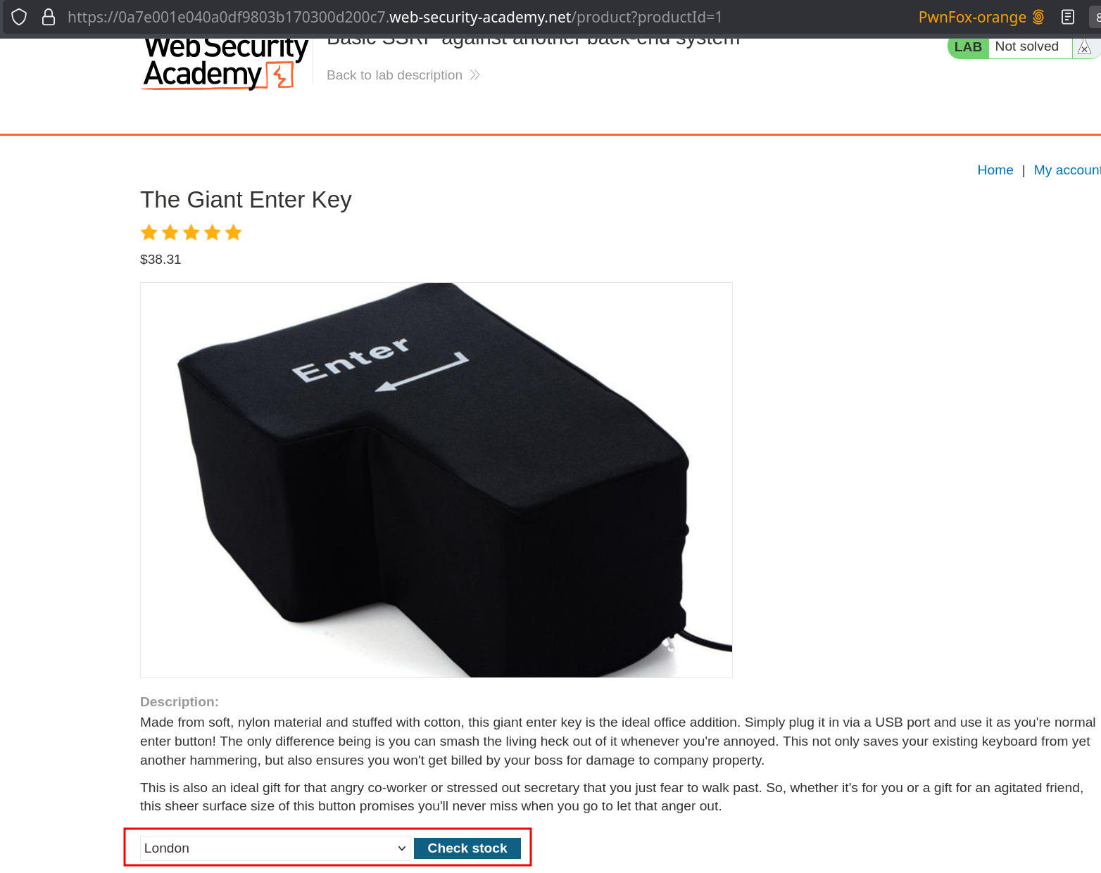 stockApiparameter in POST request. Admin Panel is locked behind an unknown IP adress in internal network, fuzz using the intruder. Get access to the admin panel and identify possible requests. Exploit them using thestockApivulnerable field again to solve the lab