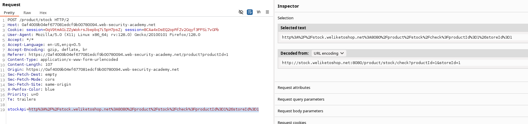 This lab has a stock check feature which fetches data from an internal system.