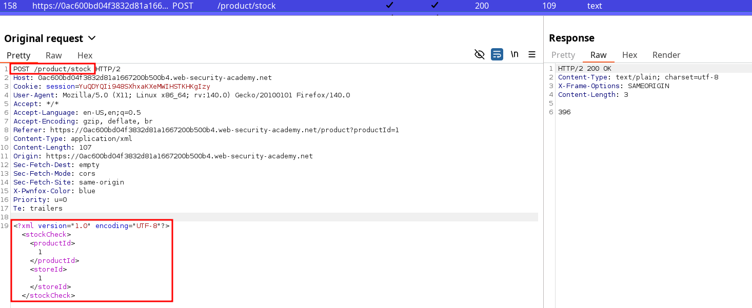 This lab has a “Check stock” feature that parses XML input and returns any unexpected values in the response.
