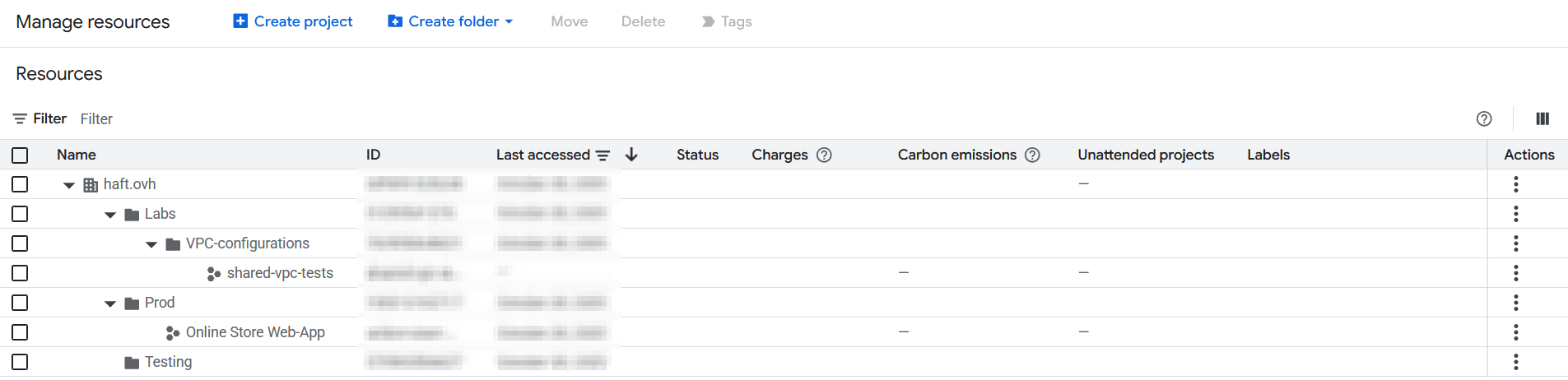 While the scans are running, We should take a look at the Organization structure, folders and projects. The environment’s architecture will help us assess the most critical deployed resources and get some context.